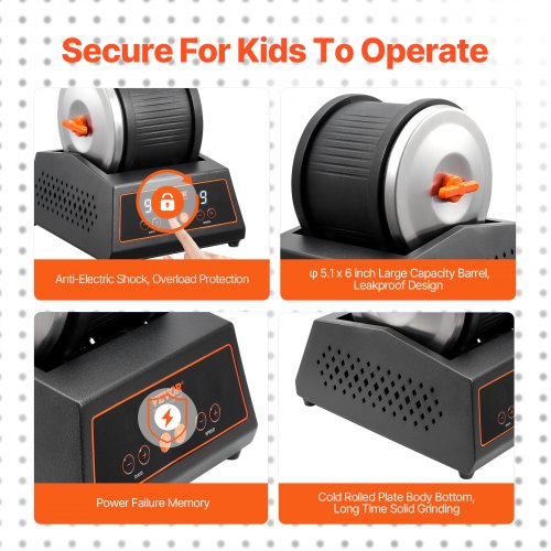 Upgraded 9-Speed Control: This rock polishing machine features an easy-to-use operating panel, allowing you to choose from 1-9 speeds and 1-9 day timer. Whether you're an 8-year-old beginner or a rock collection enthusiast, you'll enjoy effortlessly polishing gemstones to create crafts comparable to those of a master.