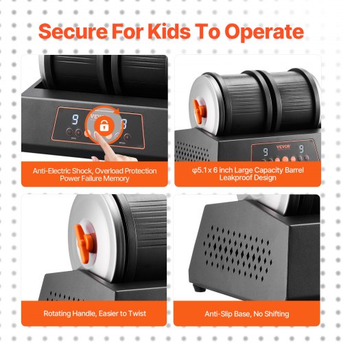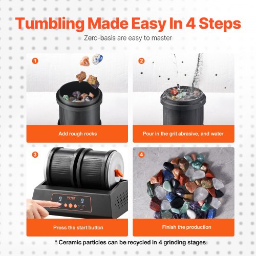 8 lbs Dual Barrels: Let your imagination run wild and create your own stone art! Built with a durable cold-rolled steel base for steady operation, this dual-barrel stone polishing machine is designed for long-term use without deformation or damage.